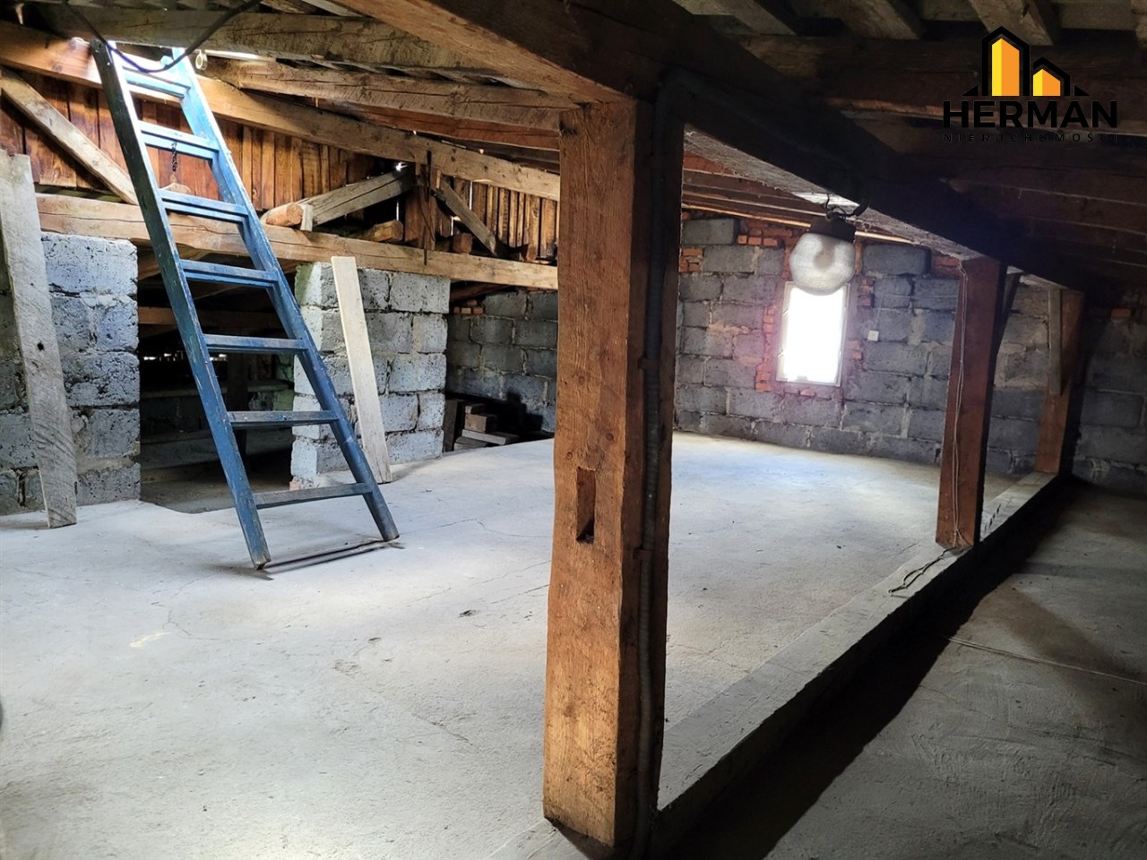 Poddasze: do zaadoptowania z możliwością wydzielenia dodatkowej powierzchni mieszkalnej po podniesieniu dachu (wejście po schodach z domu). Powierzchnia ok. 100 m2.