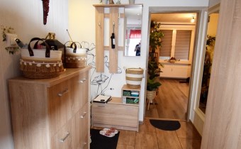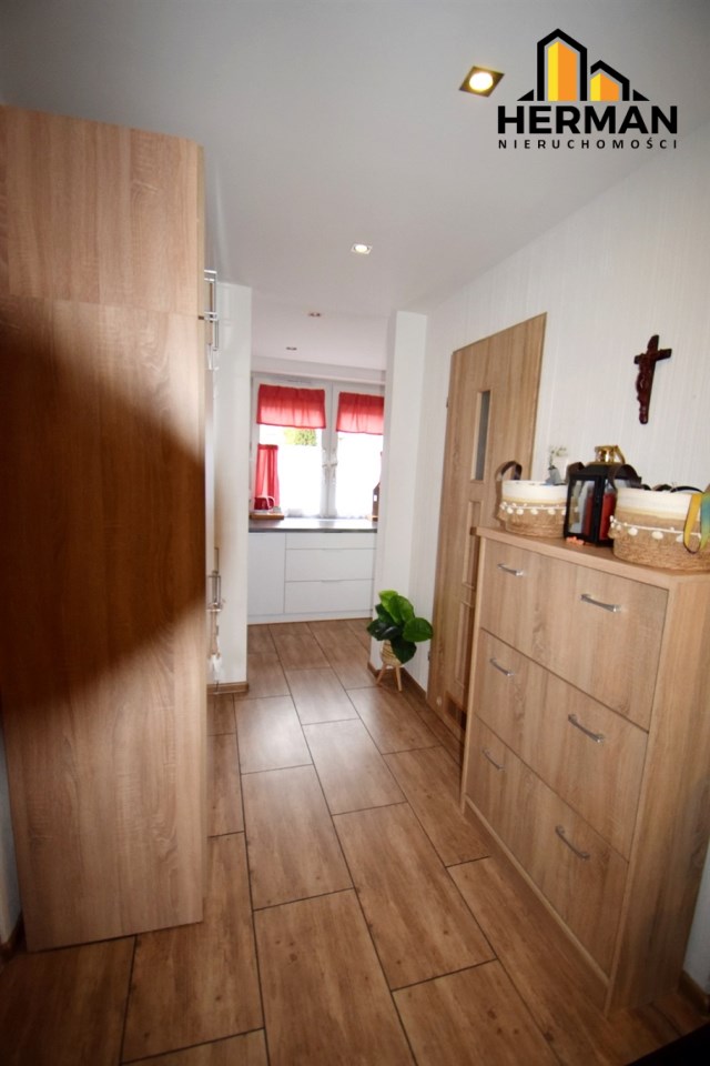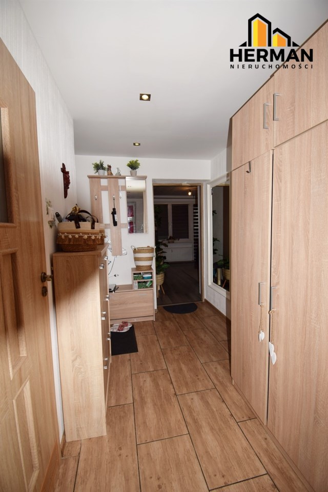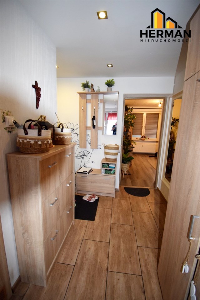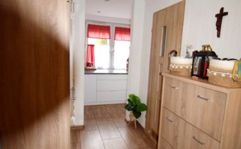 W przedpokoju pozostaje duża pojemna szafa, komoda, wieszaki wszystko zakupione w ostatnim czasie - styl Ikea.