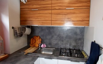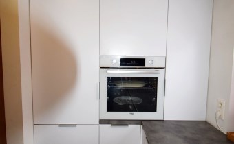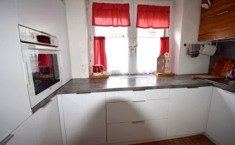 - kuchnia wykonana na wymiar w zabudowie ze sprzętami AGD.